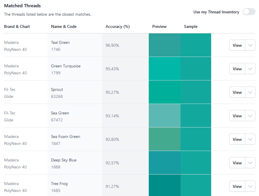 Our converter has the ability to look at your inventory of threads to show you your closest thread that matches.