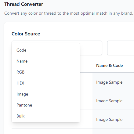 Our Thread Converter app is the only one in existence with support for converting colors, threads, and images all in one friendly and easy to use tool.